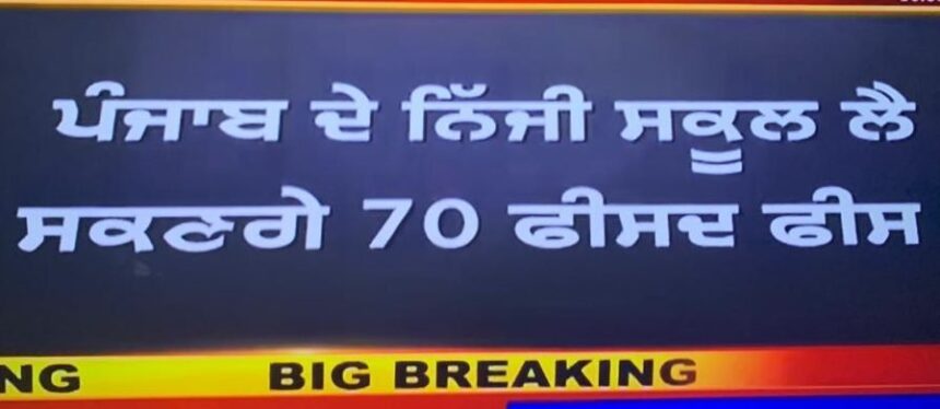 पंजाब के प्राइवेट स्कूल अब छात्रों से 70 फीसदी फीस जमा करवा सकेंगे। इस संबंध में कोर्ट ने आदेश जारी किया है। लाकडाउन समय के दौरान बंद स्कूलों से आनलाइन क्लासेस शुरू करवाई गई थी। हालांकि सरकार ने आदेश दिया था कि स्कूल फीस नहीं ले सकते। लेकिन अब 70 फीसदी फीस जमा करवाने का आदेश जारी हुई है।