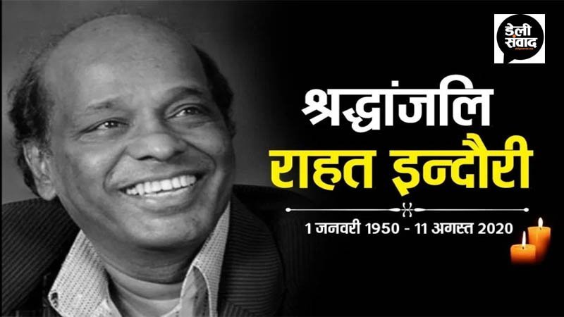 इंदौर। देश के मशहूर शायर राहत इंदौरी का मंगलवार को 70 साल की उम्र में निधन हो गया। उनका निधन दिल का दौरा पड़ने से हुआ है। वे कोरोना वायरस से भी संक्रमित थे, जिसके उपचार के लिए उन्हें मध्य प्रदेश के इंदौर में 10 अगस्त की देर रात अरविंदो अस्तपाल में भर्ती कराया गया था। राहत इंदौरी के बेटे सतलज ने इस बात की जानकारी दी थी, बाद में खुद भी राहत इंदौरी ने इस बारे में ट्वीट किया था।