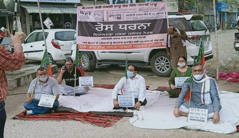 पंजाब में जहरीली शराब से मरे सैकड़ों पंजाबी लोगों के परिवारों को इंसाफ दिलाने के लिए आज भारतीय जनता पार्टी ने धरना प्रदर्शन किया। इस दौरान जालंधर नॉर्थ विधानसभा क्षेत्र के भगत सिंह चौक में रोष प्रदर्शन करते हुए धरना लगाया गया।