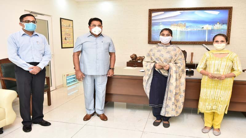 कोविड-19 के मद्देनजऱ पटियाला और अमृतसर मैडीकल कॉलेजों में स्टाफ नर्सों और अन्य मुलाजि़मों की कमी को पूरा करने के मंतव्य से चिकित्सक शिक्षा एवं अनुसंधान मंत्री ओ.पी. सोनी द्वारा आज सैक्टर-7, चंडीगढ़ स्थित अपनी रिहायश में विभिन्न श्रेणियों के 233 मुलाजि़मों को नियुक्ति पत्र जारी किए गए, जिनमें 219 स्टाफ नर्सें, 5 रेडीओग्राफर और 9 लैब टैक्रीशियन शामिल हैं।