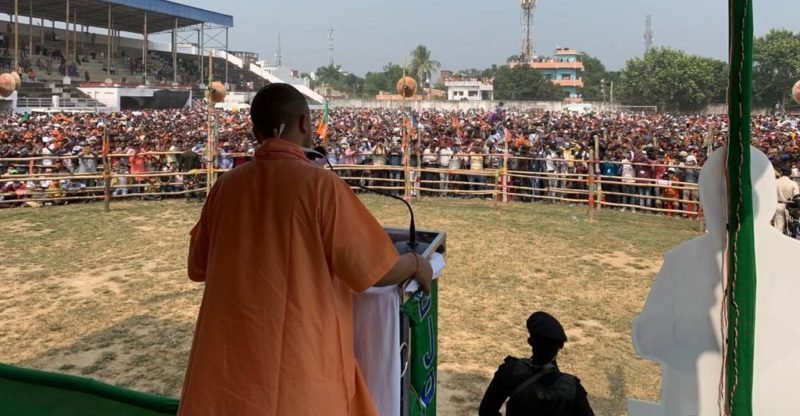सीएम योगी ने जमुई, तरारी (भोजपुर) और पालीगंज (पटना) विधान सभा क्षेत्र में राजग उम्मीदवारों के पक्ष में जन सभाएं की। बिहार विधान सभा चुनाव के प्रचार में उतरे सीएम योगी पूरे रंग में दिखे। पूर्व केंद्रीय मंत्री दिग्विजय सिंह की बेटी श्रेयसी सिंह का प्रचार करने योगी जमुई में रैली के मंच पर पहुंचे तो उत्साहित भीड़ ने जय श्री राम के उद्घोष के साथ जबरदस्त स्वागत किया। योगी ने जनसभा की शुरुआत पीएम मोदी द्वारा देश के नाम दिए गए संदेश की चर्चा से की। उन्होंने लोगों से मास्क लगाने और सोशल डिस्टेंसिंग की अपील करते हुए कहा कि जब तक दवाई नहीं तब ढिलाई नहीं के मूल मंत्र को अपनाएं।