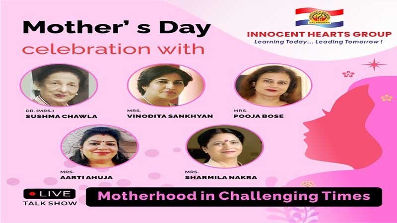 इनोसैंट हाट्र्स में कोविड-19 के दौरान परिवारों में एक मां की भूमिका को दर्शाते हुए वैबीनार करवाया गया जिसका विषय था ‘मदरहुड इन चैलेंजिंग टाइम’। इस वैबीनार में प्रसिद्ध हस्तियों में जालन्धर से डाक्टर सुषमा चावला एमडी, गायनेकोलॉजिस्ट, केरल से श्रीमती पूजा बोस प्रिंसीपल हाई रेंज स्कूल, अमृतसर से श्रीमती विनोदिता संयम सीबीएसई रिसोर्स पर्सन एवं गुजरात से श्रीमती आरती आहूजा हॉलिस्टिक हीलर ने अपने विचार प्रकट किए।