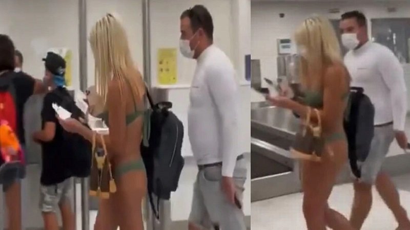 हद हो गई: बिकिनी में ही एयरपोर्ट पहुंच गई महिला, लेकिन मास्क लगाना नहीं भूली