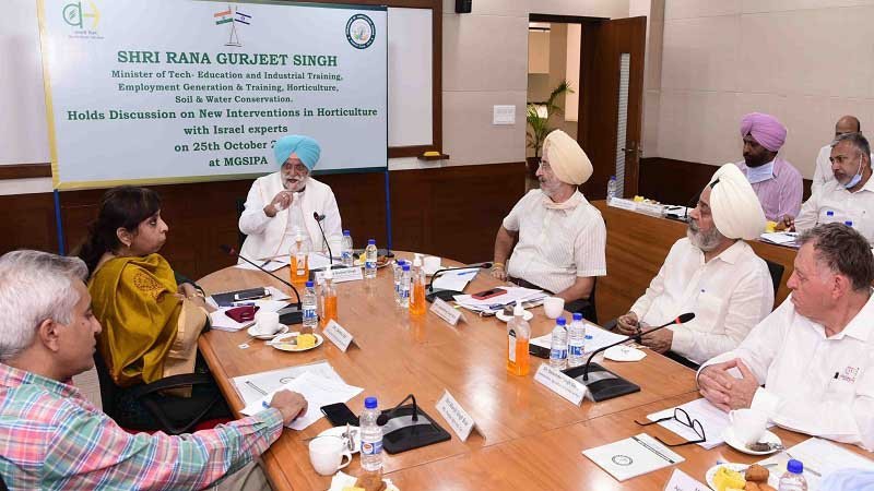 पंजाब में बाग़बानी के क्षेत्र में सुधार लाने के लिए इजराइल की नवीनतम तकनीक को अपनाएंगे जिससे पानी कम प्रयोग करके भी फ़सलों /सब्जियों की भरपूर उपज हासिल की जा सके। पंजाब के बाग़बानी और मृदा एवं जल संरक्षण मंत्री राणा गुरजीत सिंह ने आज यहाँ सैक्टर 26 स्थित मैगसीपा संस्था में इजराइल के बाग़बानी माहिरों के साथ विचार-विमर्श कर रहे थे।