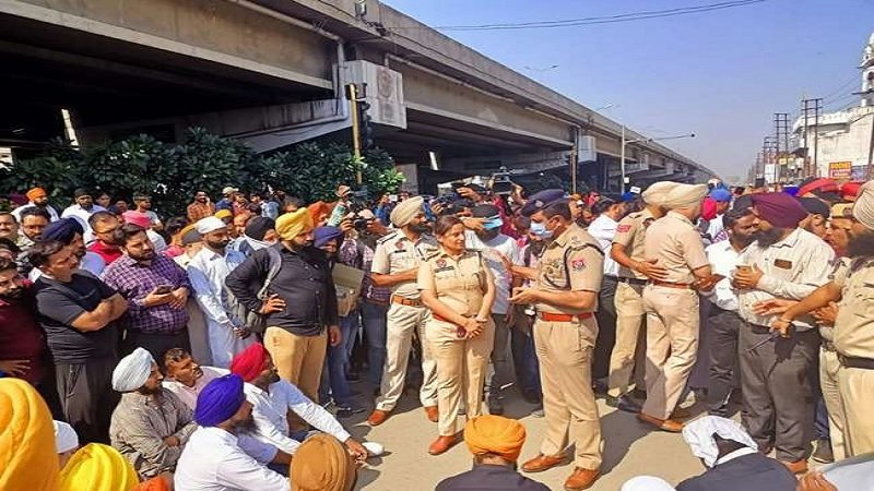 इंटरनेट मीडिया पर सिख गुरु के प्रति अपशब्द बोलने के मामले में नामजद हुए विश्व हिंदू परिषद के नेता अनिल अरोड़ा तथा उसके 3 अज्ञात साथियों को गिरफ्तार करने की मांग को लेकर विभिन्न सिख संगठनों ने सोमवार समराला चौक में धरना देकर प्रदर्शन शुरू कर दिया। जिसके चलते समराला चौक में आने वाली सभी सड़कों की ट्रैफिक व्यवस्था बुरी तरह से चरमरा कर जाम हाे गई।