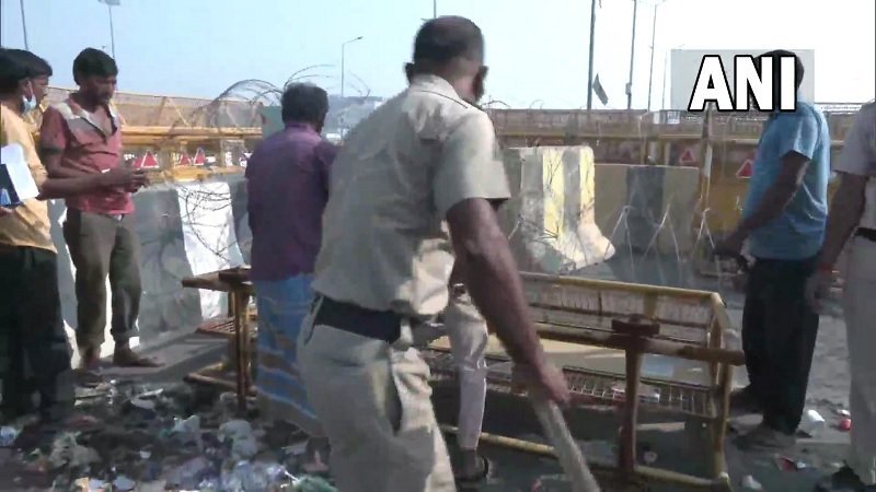 टिकरी बॉर्डर पर दिल्ली पुलिस ने हटवाए बैरिकेड्स