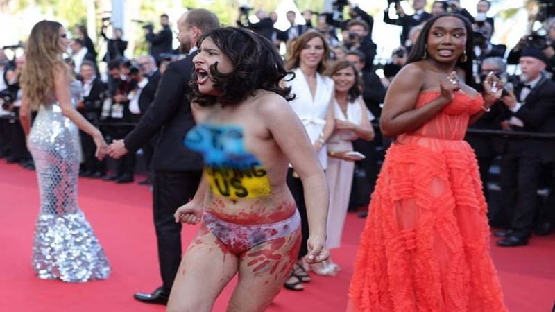 रेप करना बंद करो’, टापलेस होकर रेड कारपेट पर चिल्लाई महिला, देखें