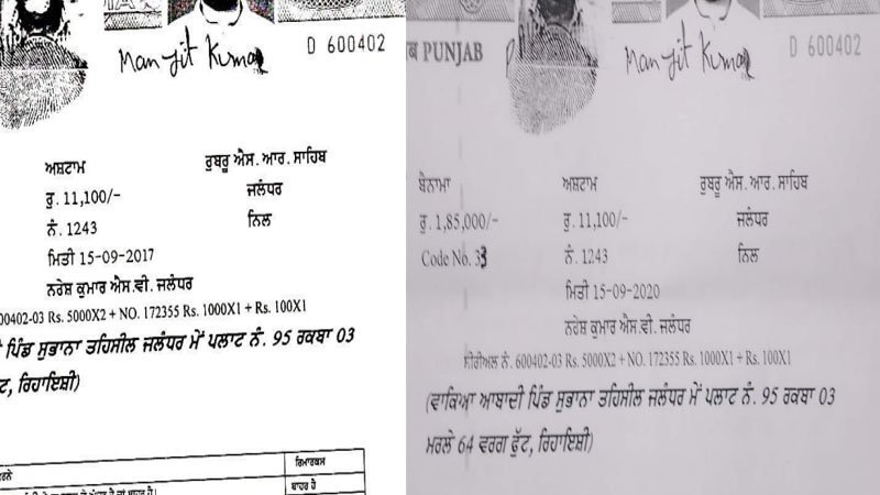 जानकारी के मुताबिक नगर निगम से एनओसी हासिल करने के लिए मंजीत सिंह ने जो रजिस्ट्री की कापी लगाई, उसकी रजिस्ट्री तहसील से सितंबर 2017 में करवाई गई थी। स्टांप पेपर नंबर D 600402 पर लिखी गई रजिस्ट्री में पाल नामक व्यक्ति ने आबादी पिंड सुभाना, तहसील जालंधर में प्लाट नंबर 95 रकबा 3 मरले 64 वर्गफुट रिहाइशी की जमीन मंजीत सिंह के नाम पर रजिस्ट्री की है।