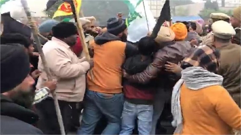 पुलिस ने बैरिकेडिंग लगाकर उन्हें आगे जाने से रोक लिया। इस दौरान प्रदर्शनकारियों और पुलिस में झड़प हो गयी। जिसके बाद लोग वहीं सड़क पर लेट गए। सूत्रों से मिली जानकरी के अनुसार पुलिस को किसानों द्वारा प्रदर्शन करने की सूचना मिलने पर उन्होंने रास्ता रोक दिया। उन्होंने हाथों में काले झंडे भी पकड़े हुए थे। रोकने के बाद पुलिस और प्रदर्शनकारियों और झड़प हुई और जबरदस्त हंगामा भी हुआ।