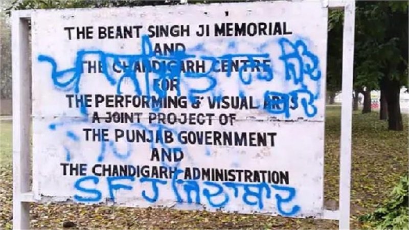 घटना चंडीगढ़ के सेक्टर 42 की है, जहां बेअंत सिंह मेमोरियल के बाहर बोर्ड पर अज्ञात लोगों ने खालिस्तान जिंदाबाद के नारे लिखे हैं। फर्नीचर मार्केट के सामने लगे इस बोर्ड के दोनों तरफ पंजाबी में खालिस्तानी नारे लिखे हुए हैं।
