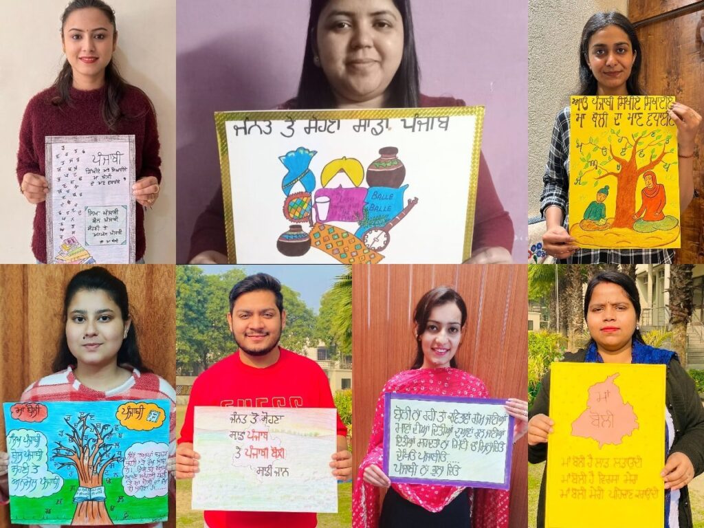 विद्यार्थी-अध्यापकों ने अपनी मातृभाषा के प्रति अपने प्यार व सम्मान को बढ़ावा देने वाले नारे लगाए और पंजाबी भाषा की महिमा का बाख़ान करने के लिए रचनात्मक फ़्लैश कार्ड व पोस्टर प्रदर्शित किए। नारा-लेखन में पंजाबी भाषा के महत्व और वर्तमान समय की प्रासंगिकता पर प्रकाश डाला।