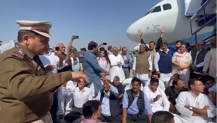 Delhi Airport: एयरपोर्ट पर पुलिस ने कांग्रेस नेता को विमान से उतारा नीचे, समर्थक बैठे धरने पर