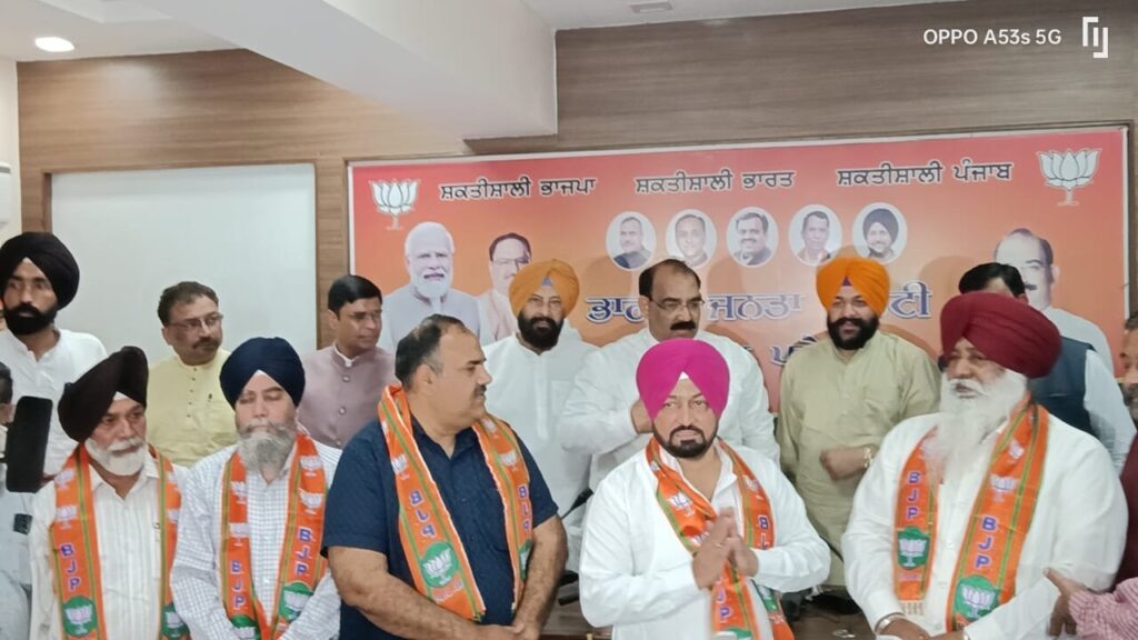 डेली संवाद, चंडीगढ़। Punjab Politics: भारतीय जनता पार्टी पंजाब के प्रदेश अध्यक्ष अश्वनी शर्मा के नेतृत्व में विभिन्न दलों के नेताओं ने अपनी-अपनी पार्टी को अलविदा कहते हुए भाजपा कार्यालय चंडीगढ़ में आयोजित कार्यक्रम के दौरान भाजपा का दामन थाम लिया। इन सभी को अश्वनी शर्मा ने भाजपा परिवार में शामिल करवाया और पार्टी का सिरोपा भेंट कर सम्मानित किया।
