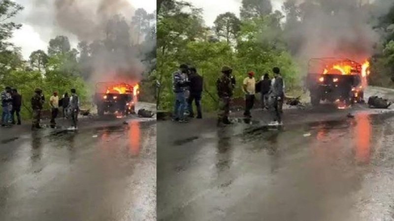 Casualties feared as an Indian Army truck catches fire in Poonch district of Jammu & Kashmir