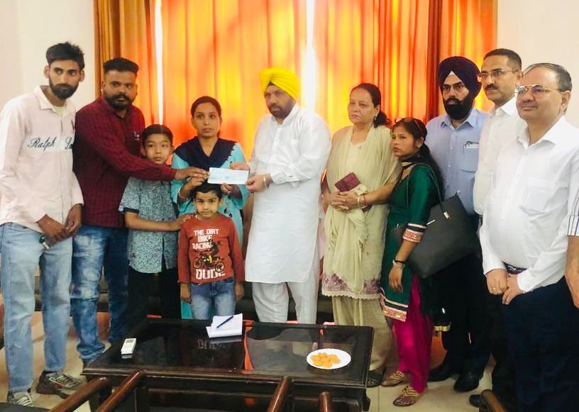 Punjab News: ऊर्जा मंत्री ने ड्यूटी के दौरान जान गंवाने वाले कर्मचारी के परिवार को 5 लाख रुपए की सहायता राशि का चैक सौंपा