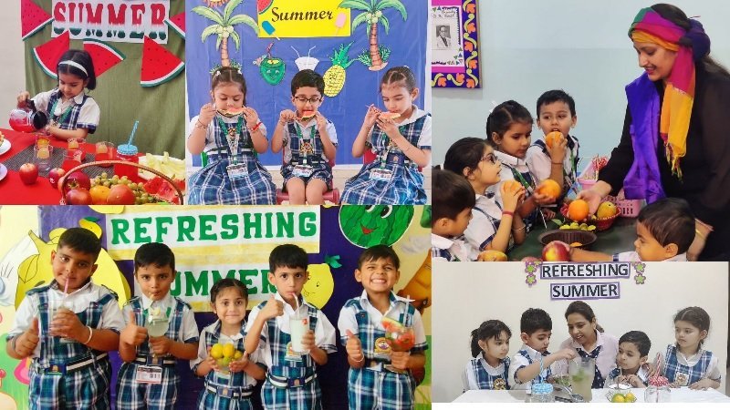 उन्हें नींबू पानी बनाना भी सिखाया गया। कक्षाओं में अध्यापिकाओं ने बच्चों को बताया कि तरबूज़, लीची, अंगूर, संतरा सब गर्मियों में खाए जाने वाले फल हैं। ये फल न केवल स्वास्थ्यवर्धक हैं बल्कि इन फलों के रस का सेवन हमें डिहाइड्रेशन से बचाता है तथा गर्मी में शरीर के तापमान को नियंत्रित रखने में भी मदद करता है। उन्होंने बताया कि आम एक ऐसा फल है, जो स्वास्थ्य एवं स्वाद की दृष्टि से सभी फलों से आगे हैं।