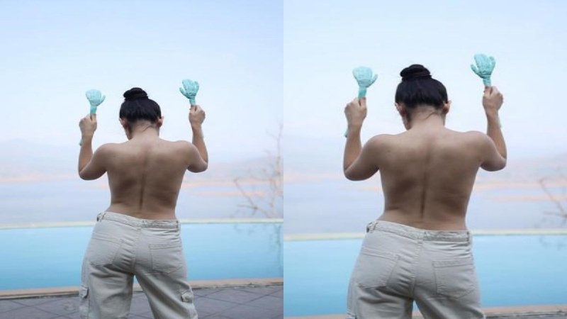 इस बार भी उर्फी जावेद का एक नया लुक सामने आया है। जिसमे वह अपनी ब्रैस्ट को प्लास्टिक के हाथ से ढकती हुई नजर आ रही है। उर्फी ने बीते दिन एक सोशल मीडिया पर वीडियो शेयर किया है जिसमे वह टॉपलेस और एक क्रीम कलर की पैंट पहने स्विमिंग पूल के पास खड़ी नजर आ रही है।