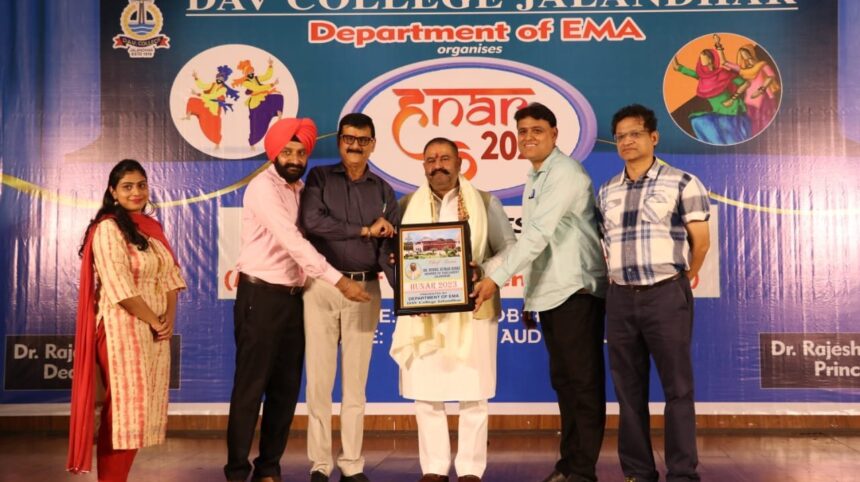डेली संवाद, जालंधर। Jalandhar News: डीएवी कॉलेज में “हुनर-2023” नामक एक भव्य सांस्कृतिक कार्यक्रम का आयोजन किया।  इस अवसर पर सांसद सुशील कुमार रिंकू मुख्य अतिथि के रूप में उपस्थित हुए। कार्यक्रम के आरंभ में कालेज प्रबंधन की तरफ से  अतिथियों का स्वागत किया गया। कार्यक्रम की विधिवत शुरुआत डीएवी कॉलेज के गीत एवं पवित्र दीप प्रज्ज्वलन से हुई।