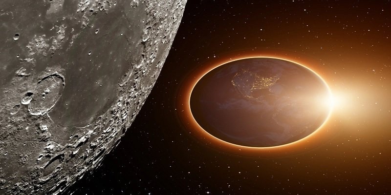 गौरतलब है कि चंद्रग्रहण पूर्णिमा को लगता है क्योंकि इस दिन पृथ्वी, सूर्य एवं चंद्रमा के बीच आ जाती है तथा ये तीनों एक सीधी रेखा में अवस्थित हो जाते हैं। पूर्ण चंद्रग्रहण तब होता है, जब पूरा चंद्रमा पृथ्वी की छाया से आवृत हो जाता है तथा आंशिक चंद्र ग्रहण होता है।