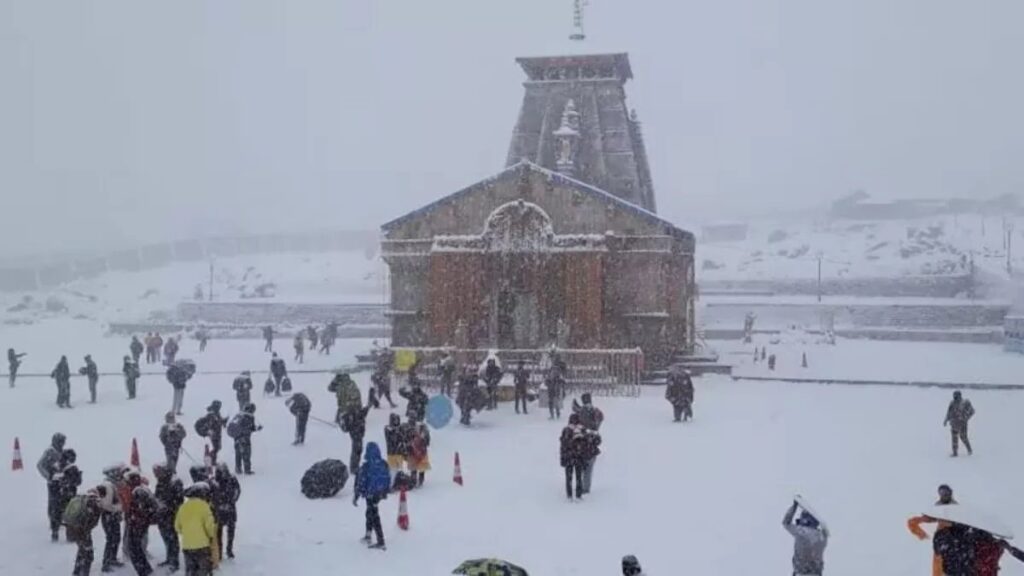केदारनाथ धाम में सुबह से ही मौसम बदला हुआ था, दोपहर होते ही मौसम में बदलाव आते ही, बर्फबारी शुरू हो गई और देर शाम तक बर्फबारी जारी है। जिससे केदारनाथ धाम में ठंड का प्रकोप काफी बढ़ गया है।