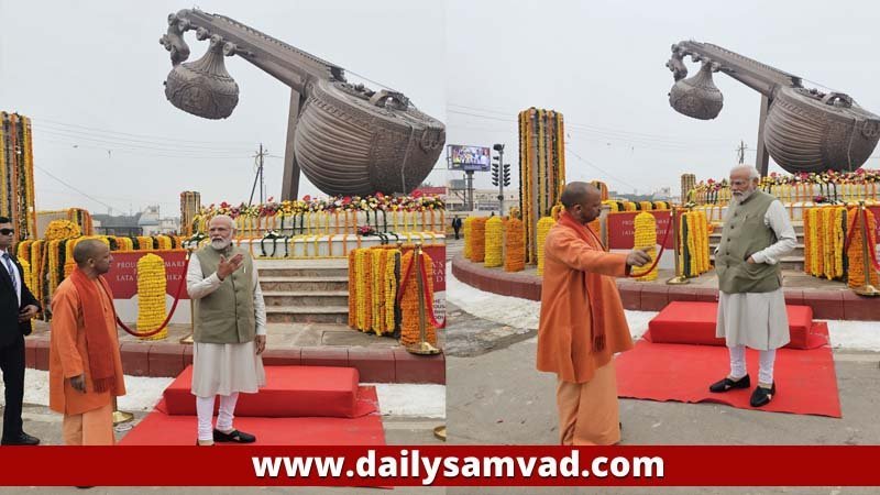 इसमें प्रधानमंत्री नरेंद्र मोदी वर्चुअल और मुख्यमंत्री योगी आदित्यनाथ अयोध्या में मौजूद थे। यहां 14 टन वजनी व 40 फ़ीट लम्बी वीणा लगाई गई है। शनिवार को यहां वीणा के पास पहली बार पहुंचकर प्रधानमंत्री नरेंद्र मोदी भाव विभोर हो गए।