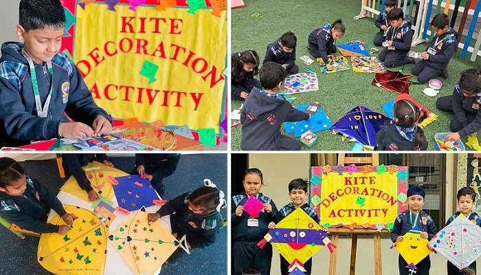 काइट डेकोरेशन एक्टिविटी में बच्चों ने भिन्न-भिन्न आकार की पतंगों को रंगों से सजाते हुए अपनी रचनात्मकता का परिचय दिया। नन्हे बच्चों ने पतंग पर अँगूठे की छपाई, बैलून प्रिंट, ईयर पेंटिंग से अपनी-अपनी पतंगों को सजाया तथा उसे पर सुंदर संदेश और स्लोगन भी लिखे।