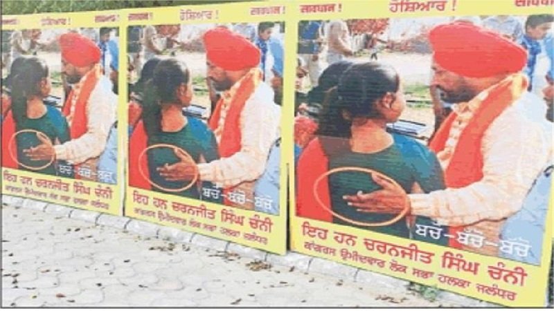 वहीं दूसरी तरह जालंधर में कांग्रेस के उम्मीदवार चरणजीत सिंह चन्नी इस समय में विवादों में घिर गए है। दरअसल चन्नी के पोस्टर शहर में वायरल हो रहे है। इस पोस्टर में चन्नी एक युवती की पीठ पर हाथ रखें नजर आ रहे है।