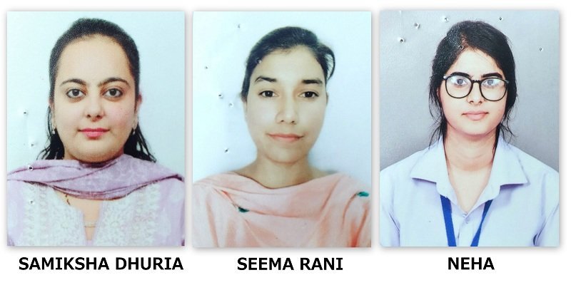जानकारी देते हुए बी.एड कॉलेज के प्रिंसिपल दिव्या जी ने बताया किसमीक्षा धुरिया ने 85.78 प्रतिशत हासिल कर पहला, सीमा वानी ते 84.88 प्रतिशत अंक हासिल कर दूसरा और नेहा ने 84.22 प्रतिशत अंक हासिल कर तीसरा स्थान हासिल किया।