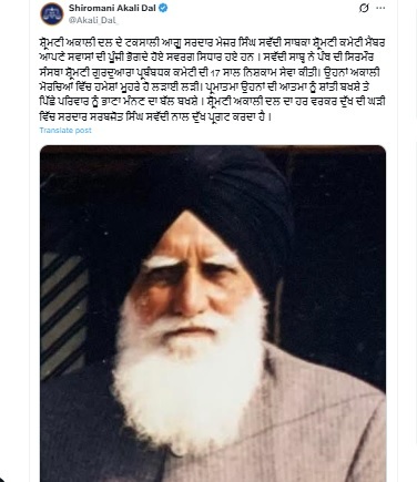 Punjab News: शिरोमणि अकाली दल के नेता का निधन, पार्टी में शोक की लहर