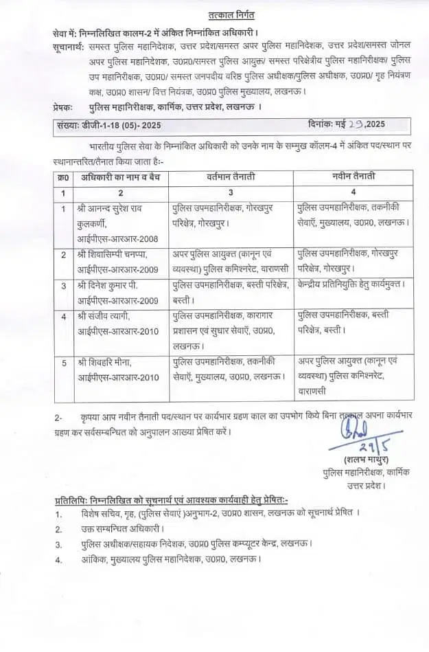 मिली जानकारी के मुताबिक यूपी (Uttar Pradesh) में पांच आईपीएस अफसरों के तबादले कर दिए गए हैं। आईपीएस दिनेश कुमार पी को केंद्रीय प्रतिनियुक्ति के लिए कार्यमुक्त किया गया है।