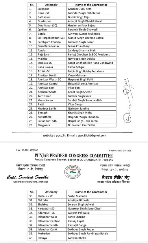 पंजाब कांग्रेस (Punjab Congress) ने साल 2027 में होने वाले विधानसभा चुनाव (Assembly Elections Punjab) की तैयारी शुरू कर दी है। पहले चरण में 117 विधानसभा हलकों के कोऑर्डिनेटर नियुक्त किए गए हैं। काफी समय से इसकी तैयारी चल रही थी।