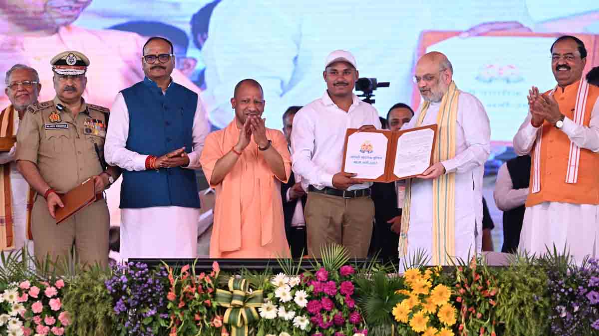 डेली संवाद, लखनऊ। Amit Shah: केंद्रीय गृह एवं सहकारिता मंत्री अमित शाह (Amit Shah) की मौजूदगी में रविवार को लखनऊ (Lucknow) के वृंदावन योजना, सेक्टर 18 स्थित डिफेंस एक्स्पो ग्राउंड में आयोजित एक भव्य समारोह में 60,244 नवनियुक्त पुलिस कार्मिकों को नियुक्तिपत्र वितरित किये गये। इस ऐतिहासिक आयोजन में अपने संबोधन में अमित शाह ने उत्तर प्रदेश के मुख्यमंत्री योगी आदित्यनाथ (Yogi Adityanath) की पारदर्शी और समावेशी भर्ती प्रक्रिया के लिए जमकर सराहना की।