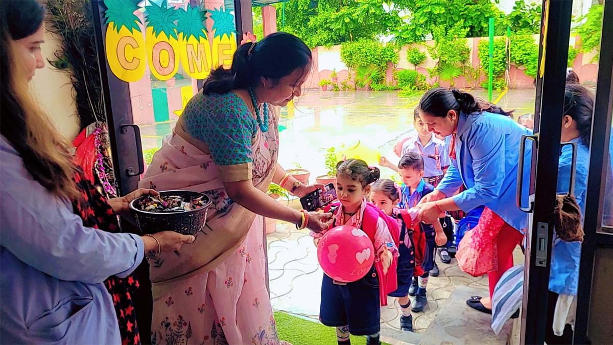 छात्रों के मुस्कुराते चेहरे और उनकी गर्मियों की रोमांचक घटनाओं को सुनने के लिए शिक्षक भी उत्साहित थे। स्कूल ने नन्हे-मुन्नों के लिए स्वागत गतिविधियों का आयोजन किया। छात्र इस गतिविधि का खूब आनंद ले रहे थे।