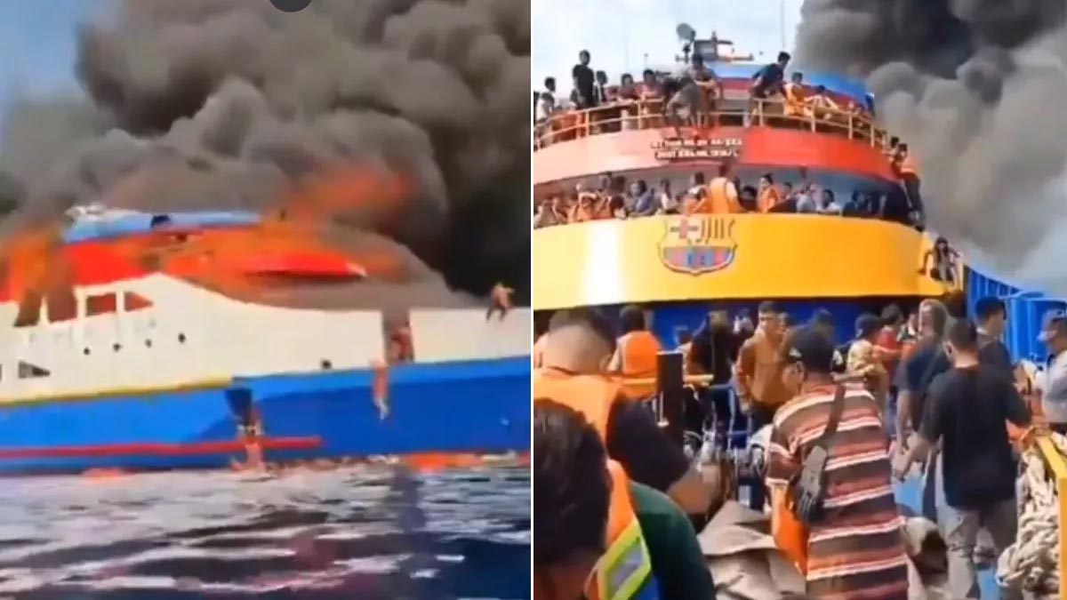 डेली संवाद, नई दिल्ली। Viral Video: इंडोनेशिया (Indonesia) में यात्रियों से भरी शिप में मनाडो बंदरगाह जा रही थी। KM Barcelona VA नाम के एक यात्री जहाज में भीषण आग लगने से समुद्र के बीचों बीच हड़कंप मच गया। शिप पर करीब 280 लोग सवार थे और आग (Fire) लगने के बाद इनमें अफरा-तफरी मच गई। इसका वीडियो इंटरनेट पर काफी वायरल हो रहा है।