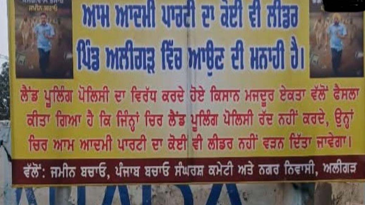 जानकारी के अनुसार जगराओं के अलीगढ़, मालकी, पोना और अगवार गुज्जर गांवों के लोगों ने लैंड पूलिंग योजना के विरोध में कल शाम गांव की सीमाओं पर बोर्ड लगा दिए थे, जिसमें आम आदमी पार्टी के किसी भी नेता के गांव में प्रवेश पर रोक लगा दी गई थी लेकिन बीती रात ही किसी अज्ञात लोगों द्वारा इसको फाड़ दिया गया है।