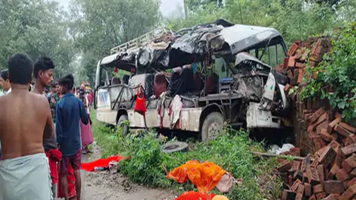 प्रत्यक्षदर्शियों के मुताबिक बस और ट्रक के बीच टक्कर इतनी जोरदार थी कि बस का आधा हिस्सा पूरी तरह से धंस गया। कांवड़ियों के झोले और सामान बस में लटके दिख रहे हैं। सभी मरने वाले बिहार, गयाजी के मासूमगंज के बताए जा रहे हैं।