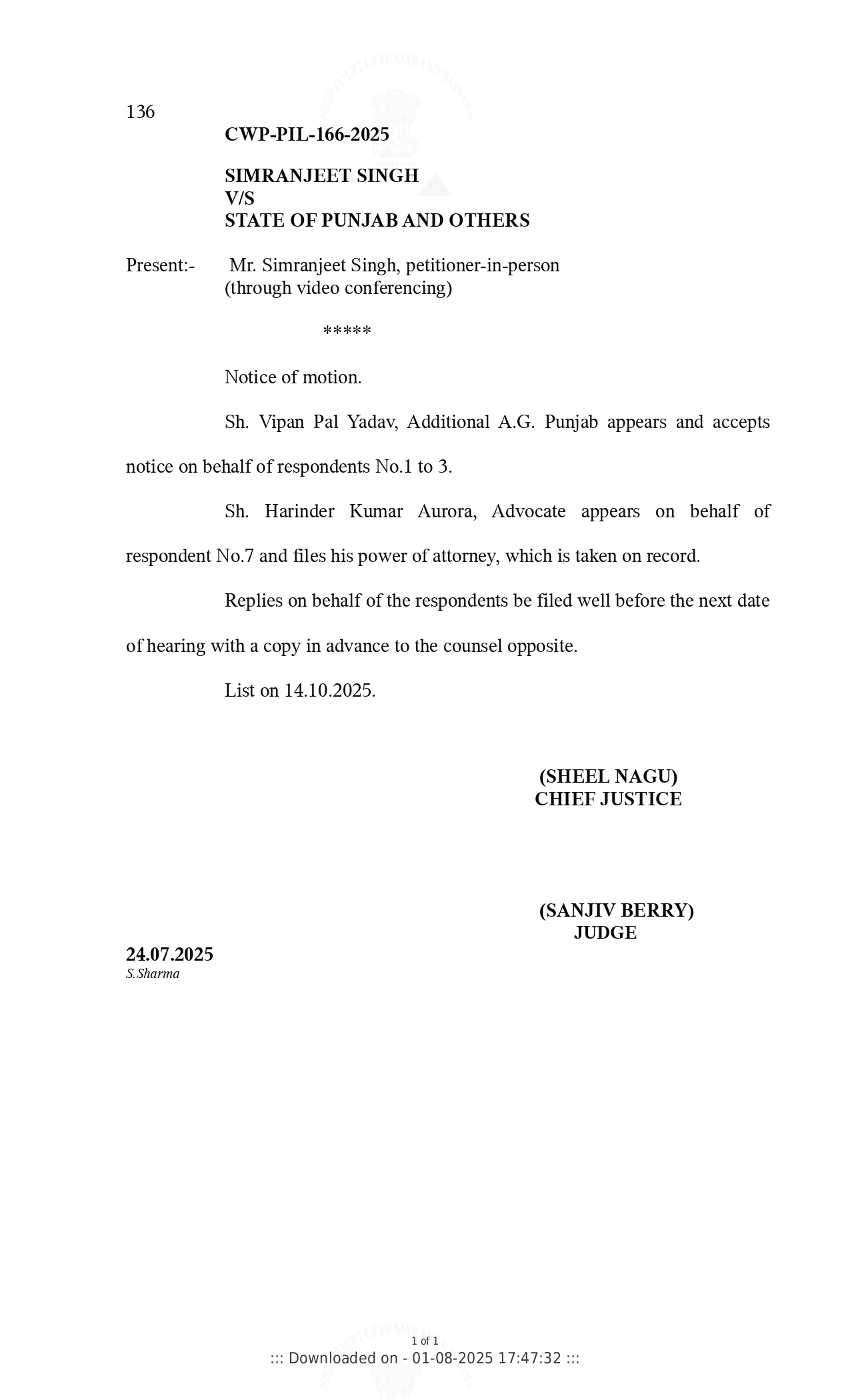 जनहित याचिका पर सुनवाई के दौरान पंजाब सरकार की तरफ से एडिशनल एजी विनयपाल यादव और फगवाड़ा नगर निगम की तरफ से एडवोकेट हरिंदर कुमार अरोड़ा हाईकोर्ट में पेश होकर पक्ष रखा, लेकिन हाईकोर्ट की डबल बैंच के चीफ जास्टिस शील नागू और संजीव बैरी ने अफसरों को नोटिस जारी कर जवाब मांगा है।