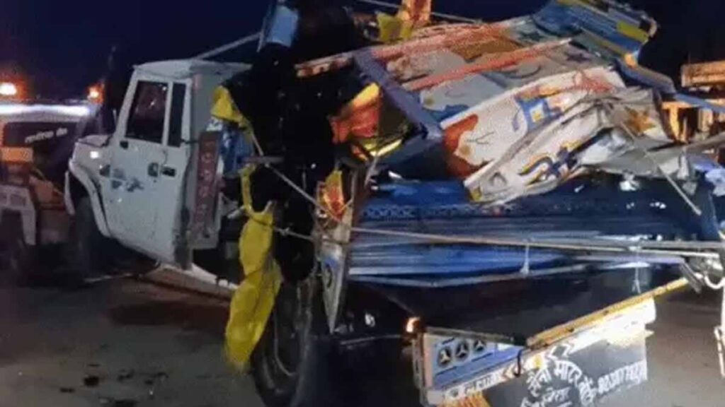 कंटेनर ने पिकअप को पीछे से मारी टक्कर