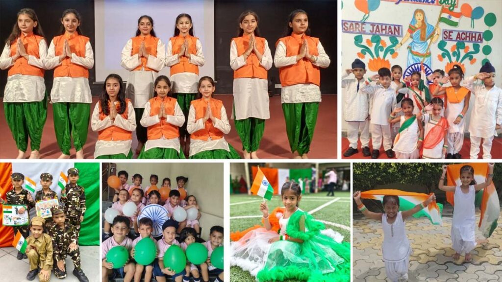 कक्षा 1 व 2 के बच्चों ने “स्वतंत्रता सेनानियों को सलाम” कलरफुल कॉस्ट्यूम परेड में भाग लिया। कक्षा 3 व 4 के बच्चों ने राष्ट्रीय प्रतीकों से प्रेरित देशभक्ति शिल्पकला में भाग लिया, कक्षा 5 के बच्चों ने नारों पर आधारित पोस्टर बनाए तथा कक्षा 6 के बच्चों ने त्रिरंगा कुलिनरी आर्ट (पाक कला) गतिविधि में अपनी रचनात्मकता दिखाई। कक्षा 7 व 8 के विद्यार्थियों ने देशभक्ति कविताओं और भाषणों के साथ विशेष सभाएँ आयोजित कीं, जबकि कक्षा 9 व 10 के विद्यार्थियों ने “स्वतंत्रता ज़िम्मेदारी के साथ आती है” विषय पर देशभक्ति वाद-विवाद प्रतियोगिता में भाग लिया।