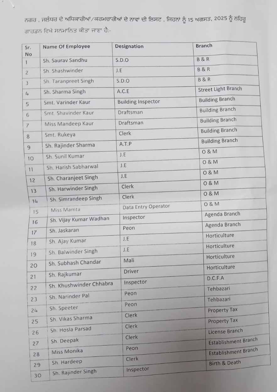 Jalandhar News: जालंधर नगर निगम के ATP समेत 73 अफसरों और कर्मचारियों को मेयर करेंगे सम्मानित