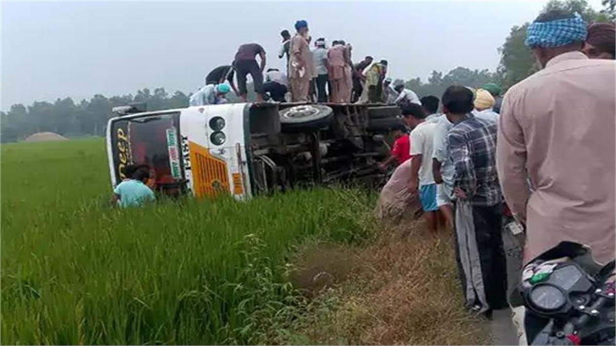खेतों में पलटी सवारियों से भरी बस