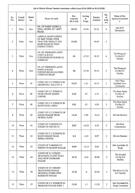 सीनियर डिप्टी मेयर बलबीर सिंह बिट्टू के मुताबिक जालंधर वेस्ट हलके के सड़क गलियों और कई तरह के विकास कामों के टेंडर लगाए गए। प्रस्ताव संख्या 131 में इन कामों का उल्लेख किया गया। जांच में पता चला कि इन कामों में ठेकेदारों ने पूल की है। जिससे इन कामों को रद्द करते हुए एसडीओ को ओएंडएम ब्रांच में भेज दिया गया है।
