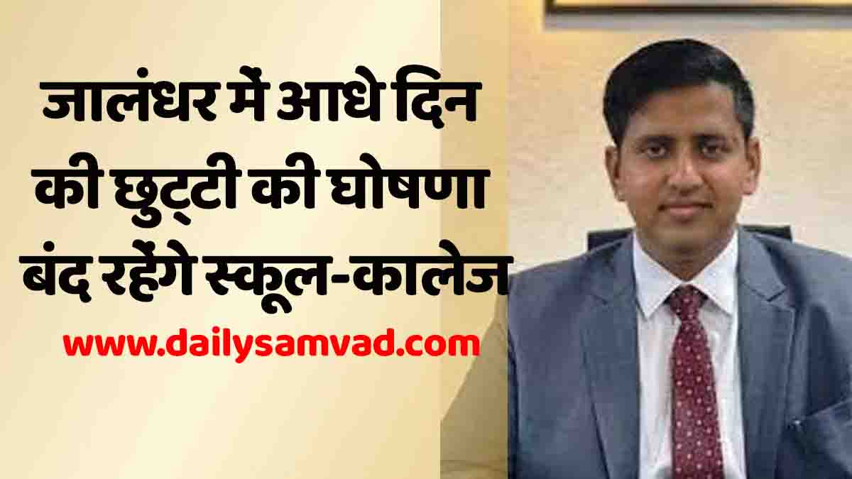 डेली संवाद, जालंधर। Holiday in Jalandhar News Update: जालंधर नगर निगम की सीमा में आते सभी स्कूल-कालेज और आईटीआई संस्थानों पर आधे दिन की छुट्टी की घोषणा की गई है। यह आदेश जालंधर के डिप्टी कमिश्नर डा. हिमांशु अग्रवाल ने जारी किया है।