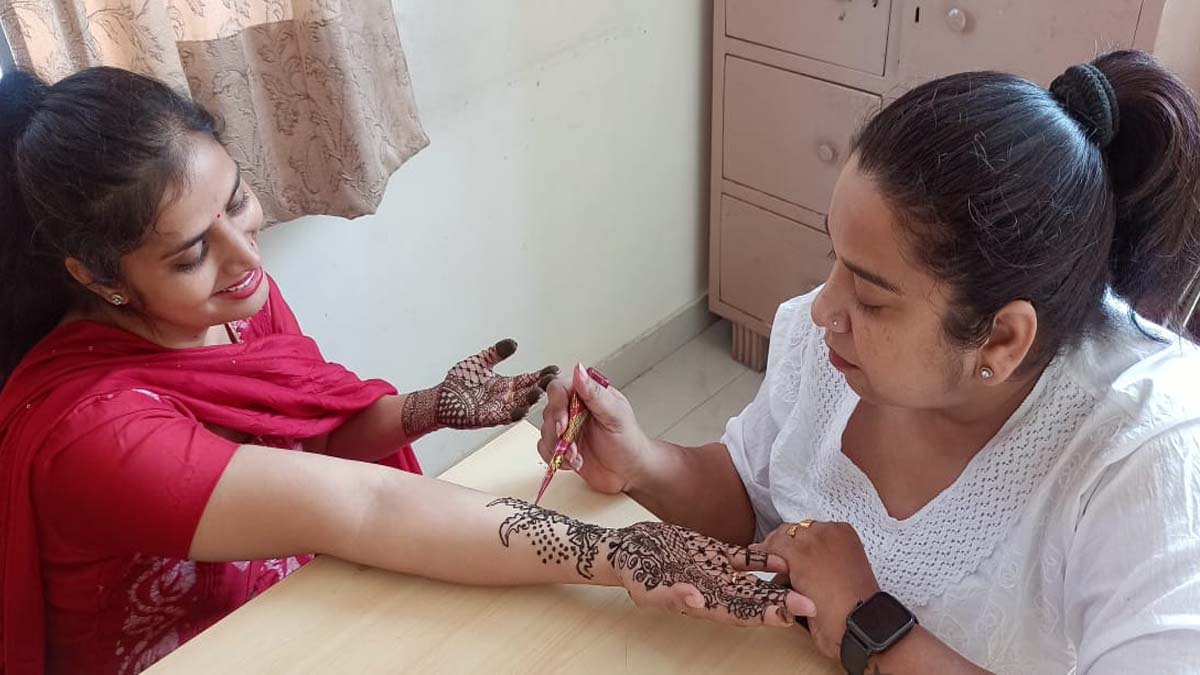 एक भारतीय महिला की शक्ति, उसकी सुंदरता, सादगी, अनुग्रह सभी को मेंहदी डिजाइन अनुप्रयोगों की पारंपरिक कला के साथ महिमामंडित किया गया था। छात्र-अध्यापिकाओं ने एक-दूसरे की हथेलियों पर मेंहदी कला के प्रतीकात्मक डिजाइन बनाए और नाखूनों को रंगने, सजाने, बढ़ाने और सुंदर बनाकर नेल आर्ट की रचनात्मक गतिविधि का आनंद लिया।