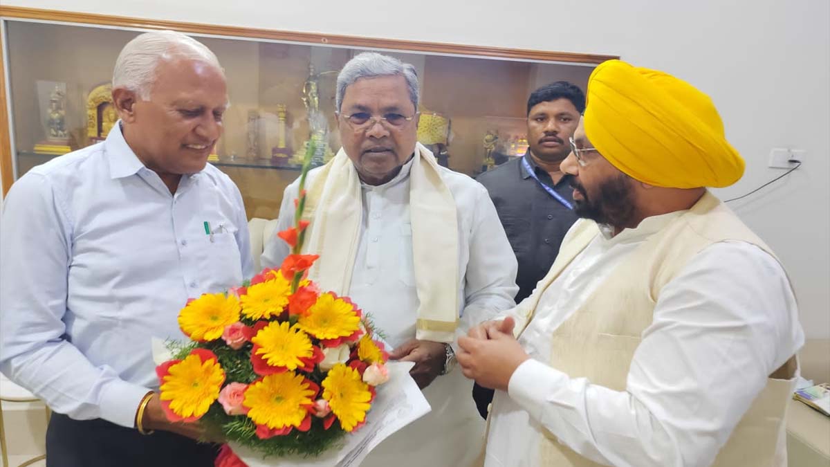 डेली संवाद, चंडीगढ़। Punjab News: पंजाब (Punjab) के लोक निर्माण मंत्री हरभजन सिंह ई.टी.ओ. और जल संसाधन मंत्री बरिंदर कुमार गोयल ने आज बेंगलुरु में कर्नाटक के मुख्यमंत्री सिद्धारमैया से मुलाकात कर अगले महीने श्री आनंदपुर साहिब में आयोजित होने वाले नौवें पातशाह श्री गुरु तेग बहादर जी के 350वें शहीदी समारोहों में शामिल होने के लिए औपचारिक निमंत्रण दिया।