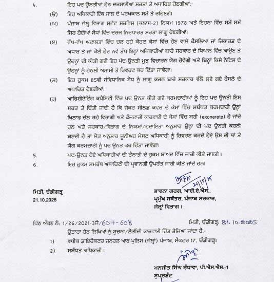 डेली संवाद, लुधियाना। Promotion: पंजाब सरकार द्वारा फेरबदल का दौर लगातार जारी है। सरकार (Punjab Government) ने जेलों में बढ़ते अपराध, ड्रग्स और गैंगस्टरों की गतिविधियों पर लगाम लगाने के लिए बड़ा कदम उठाया है।