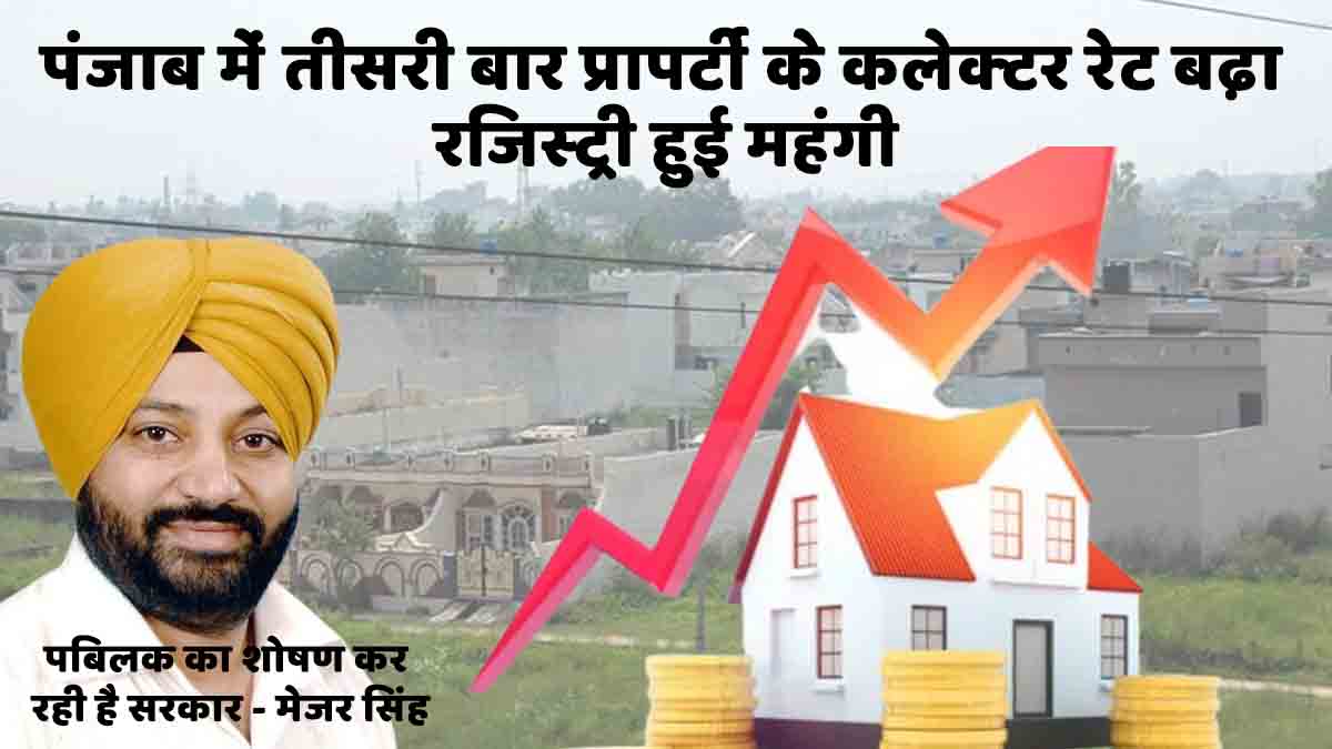 मेजर सिंह ने कहा कि सरकार का विजन पब्लिक को फायदा पहुंचाना नहीं है, बल्कि उनका शोषण करना है। उन्होंने कहा कि कलेक्टर रेट बढ़ने का आम लोगों पर असर पड़ेगा। उन्होंने कहा कि अगर किसी प्लॉट की कीमत कलेक्टर रेट के हिसाब से 1 लाख रुपए है, तो उसकी रजिस्ट्री करवाते वक्त 8000 रुपए स्टाम्प व रजिस्ट्री फीस लगती है।