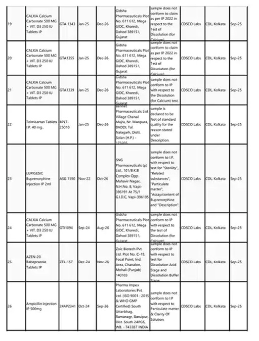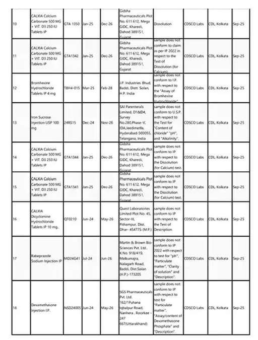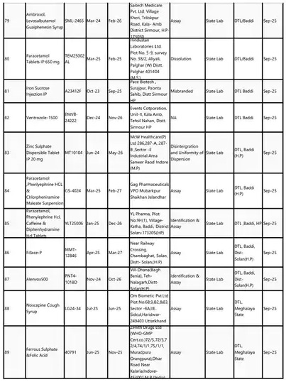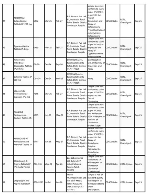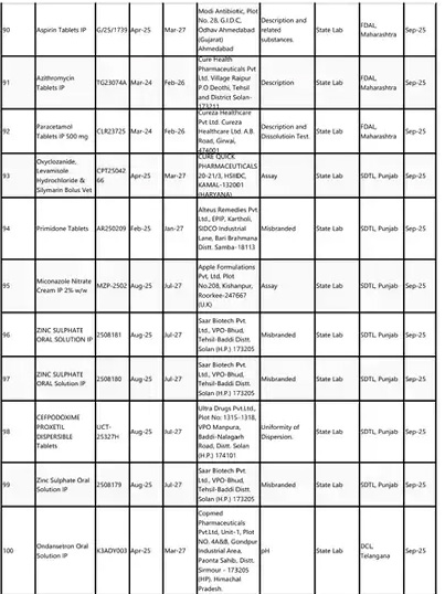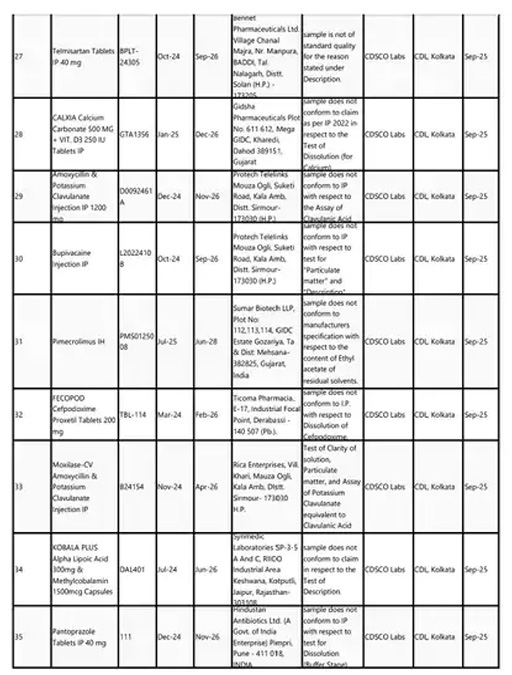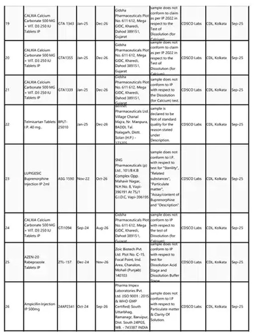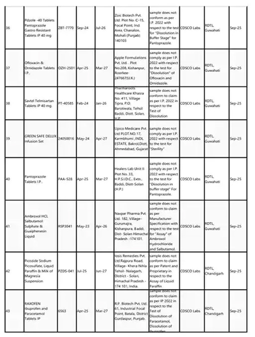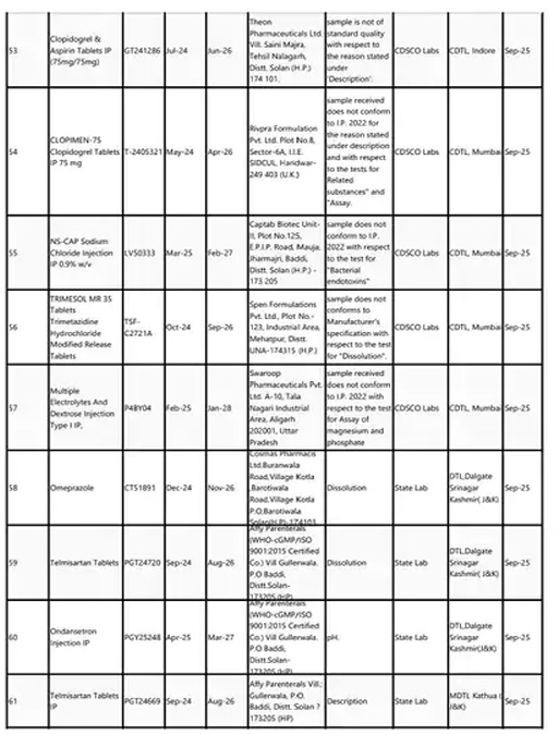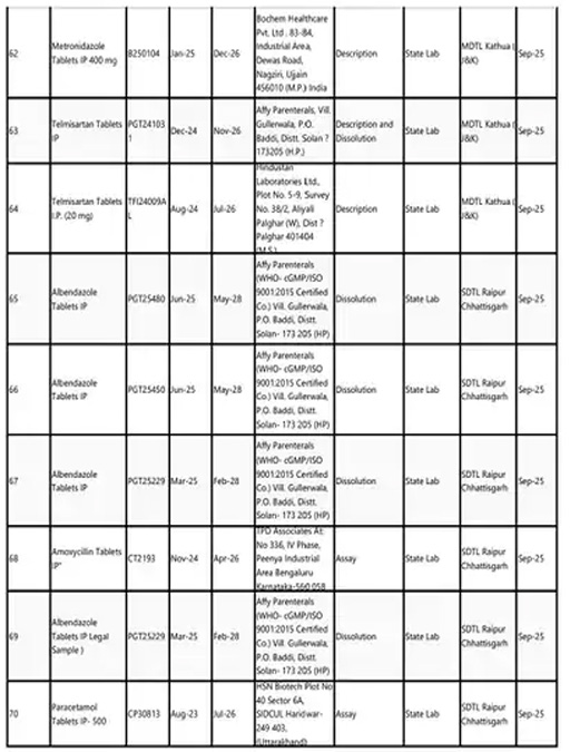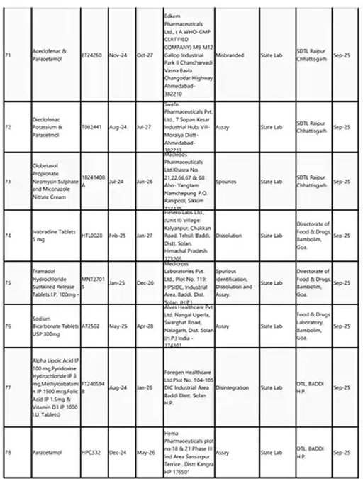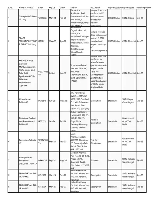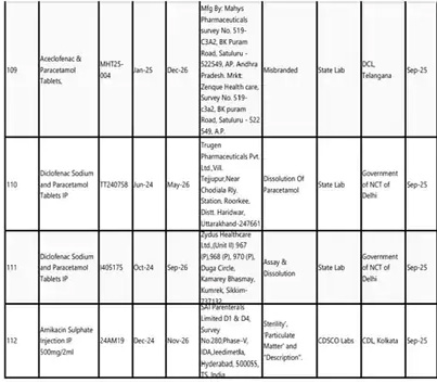 सितंबर 2025 में जारी रिपोर्ट के मुताबिक, देशभर की केंद्रीय और राज्य स्तरीय लैब्स में 52 दवाएं केंद्र और 60 दवाएं राज्यों के स्तर पर मानकों पर खरी नहीं उतरीं। सबसे अधिक 49 दवाएं हिमाचल प्रदेश, 16 गुजरात, 12 उत्तराखंड, 11 पंजाब, 6 मध्य प्रदेश सहित अन्य राज्यों से संबंधित हैं।