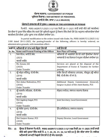 Punjab Transfer News: पंजाब सरकार ने IAS और PCS अफसरों का तबादला, पढ़ें Transfer List