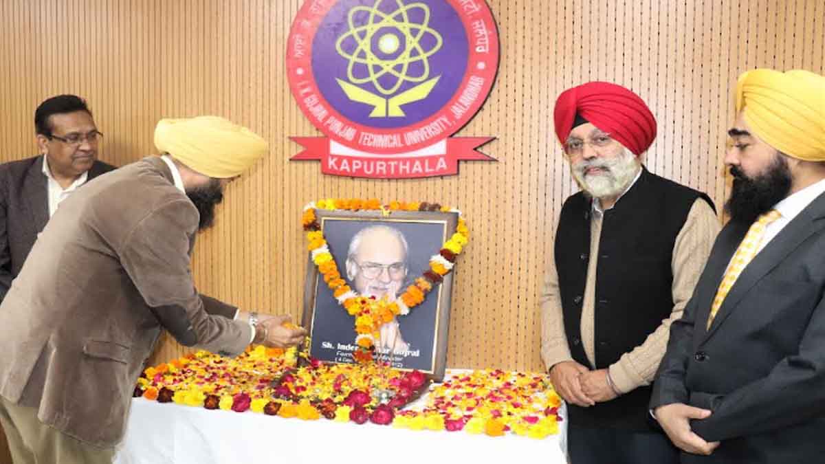 डेली संवाद, जालंधर/कपूरथला। IKGPTU News: आई.के.गुजराल पंजाब टेक्निकल यूनिवर्सिटी (आई.के.जी पी.टी.यू ) में देश के 12वें प्रधानमंत्री स्व. श्री इन्दर कुमार गुजराल जी को उनके 106वें जन्म दिवस पर याद किया गया। यूनिवर्सिटी के कुलपति सचिवालय में आयोजित समारोह में कुलपति प्रो (डा) सुशील मित्तल मुख्यातिथि रहे। रजिस्ट्रार डा. नवदीपक संधू विशेष अतिथि रहे।